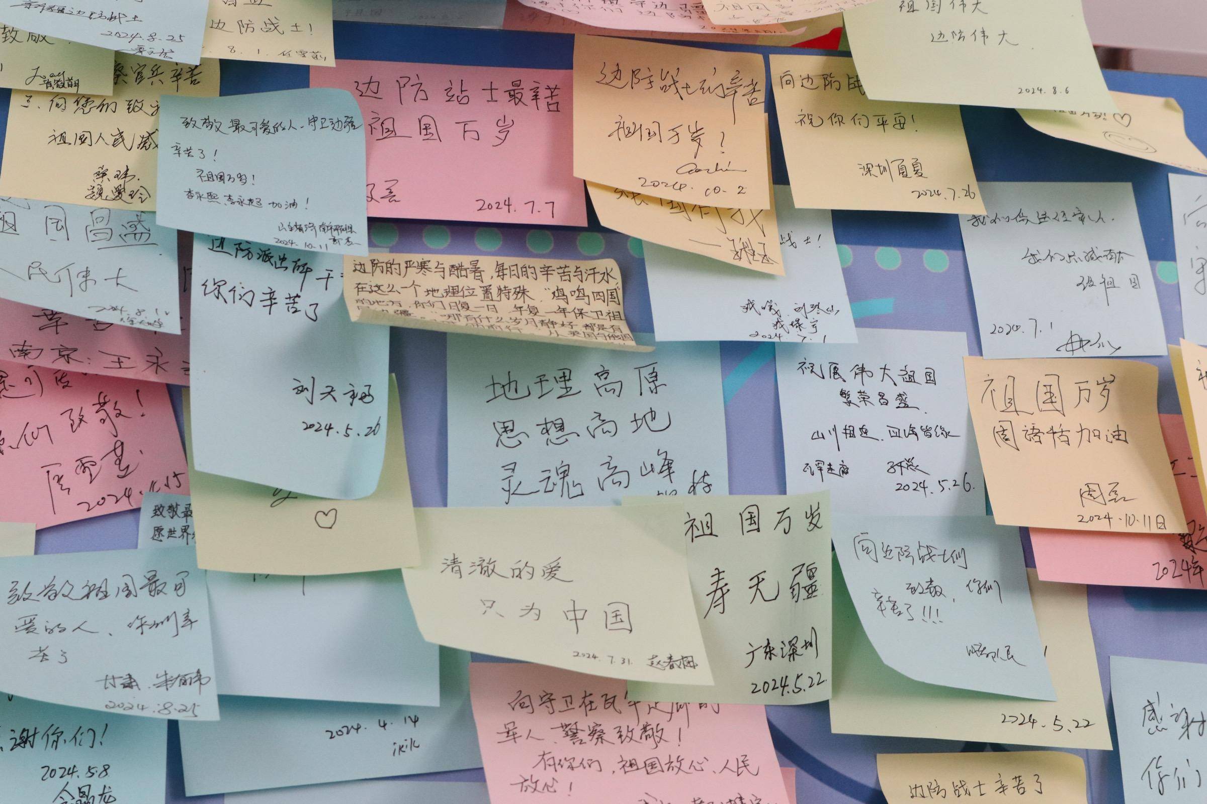 记者看到,在红色基地的留言墙上,贴满了来自全国各地游客的感言。“在边疆走过的每一步都算数”“地理高原、思想高地、灵魂高峰”“选择这片高原,既需要理想,也需要勇气,天下有那么多好的地方,而一颗颗年轻的心却偏偏选择了边关”…… 这些真挚的话语,是对戍边民警的崇高敬意,更是对祖国的深情告白。每一条留言如同一束温暖的光,照亮戍边民警前行的道路,成为他们坚守的动力源泉。