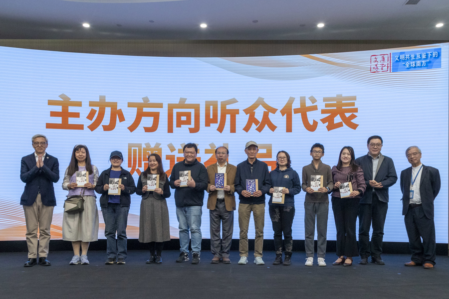 8. 九位听友获赠系列讲座纪念奖:全球南方团结奖——2026年文汇报全年订报,并与嘉宾们合影,另有六人获得全球南方互鉴奖——文汇报9次版面报纸。