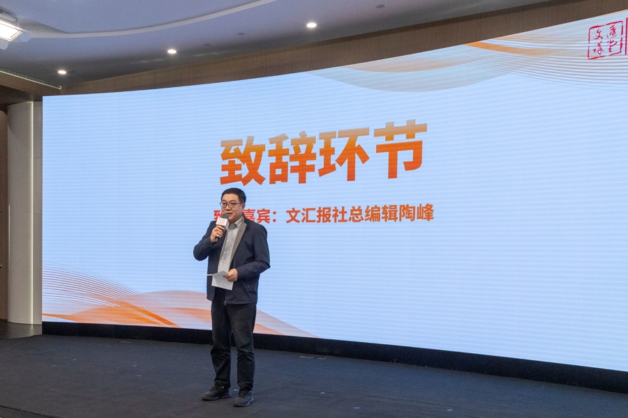 7. 闭幕式环节,文汇报总编辑陶峰致辞感谢合作方嘉宾团队与广大线上线下听众群。