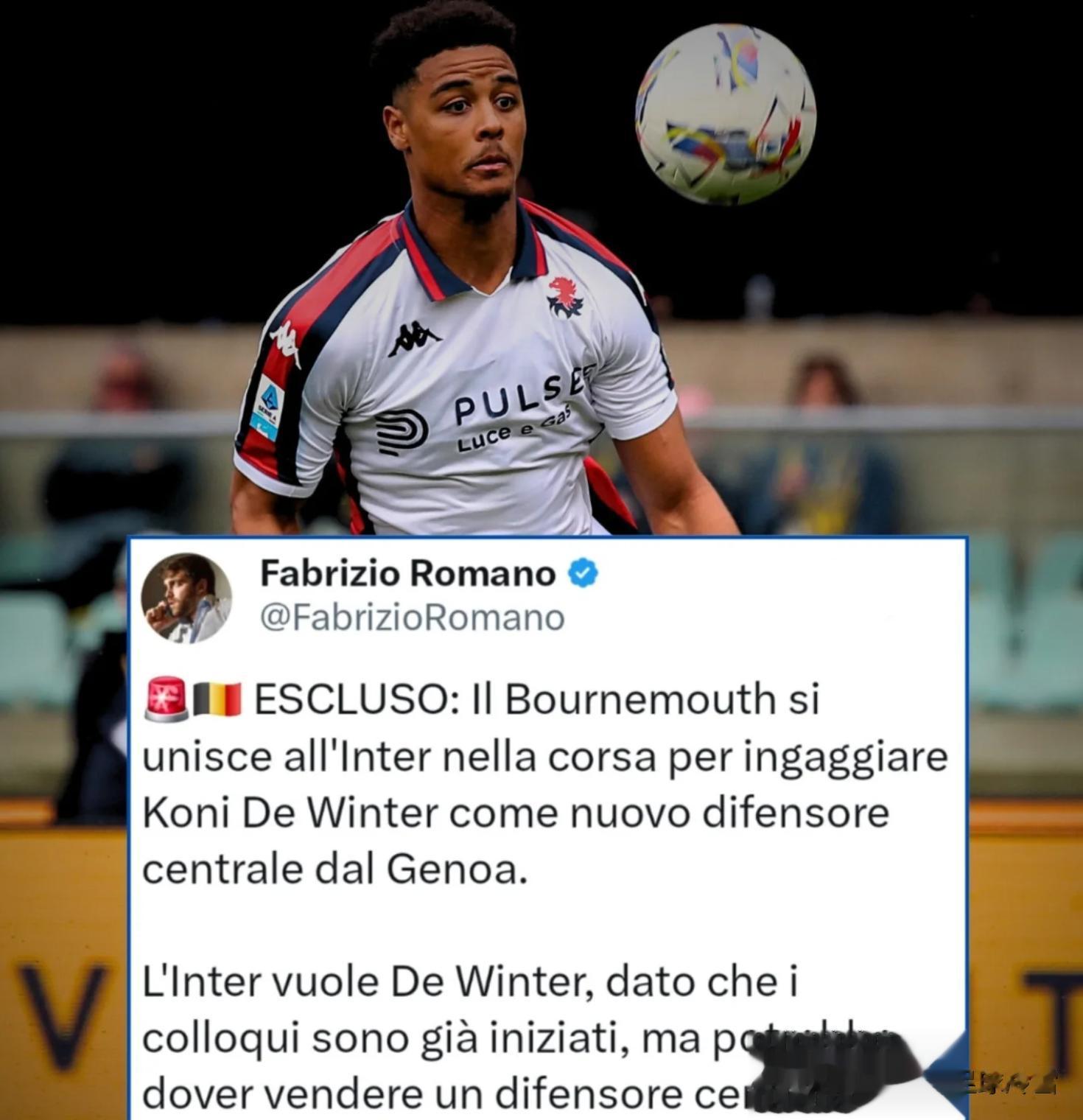 罗马诺予以了证实:“德温特在热那亚表现出色,国米对他一直非常感兴趣,他被国米认为是一名非常有价值的球员。据我所知,国米真的很喜欢德温特,在球队内部,他的支持率一直在提升。”不过,转会专家指出,德温特也是英超球队伯恩茅斯引援名单前列的球员。