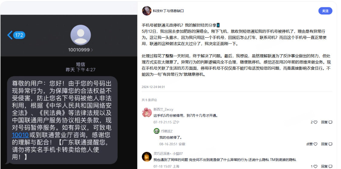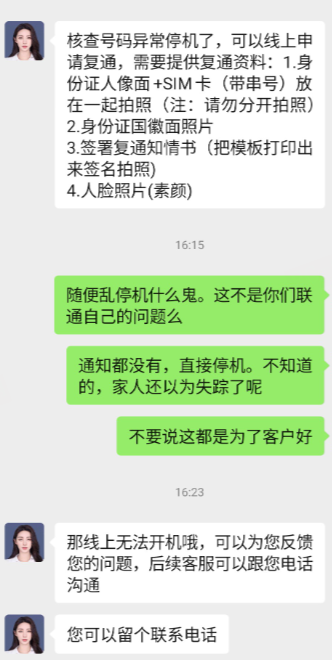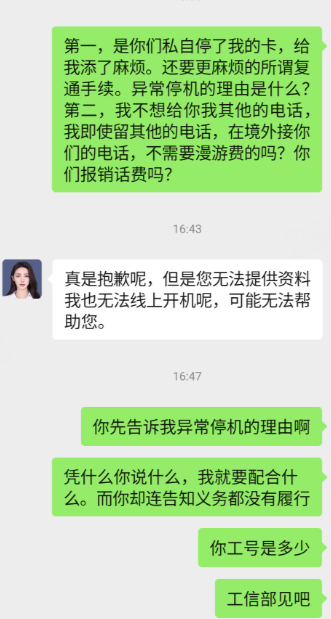 那问题就来了,如果一个人有其他手机号还好,但如果只有这一个手机号,在被停机后,怎么去提交这些资料?更何况此时,人还不在大陆地区,想找个运营商的营业厅都找不到。